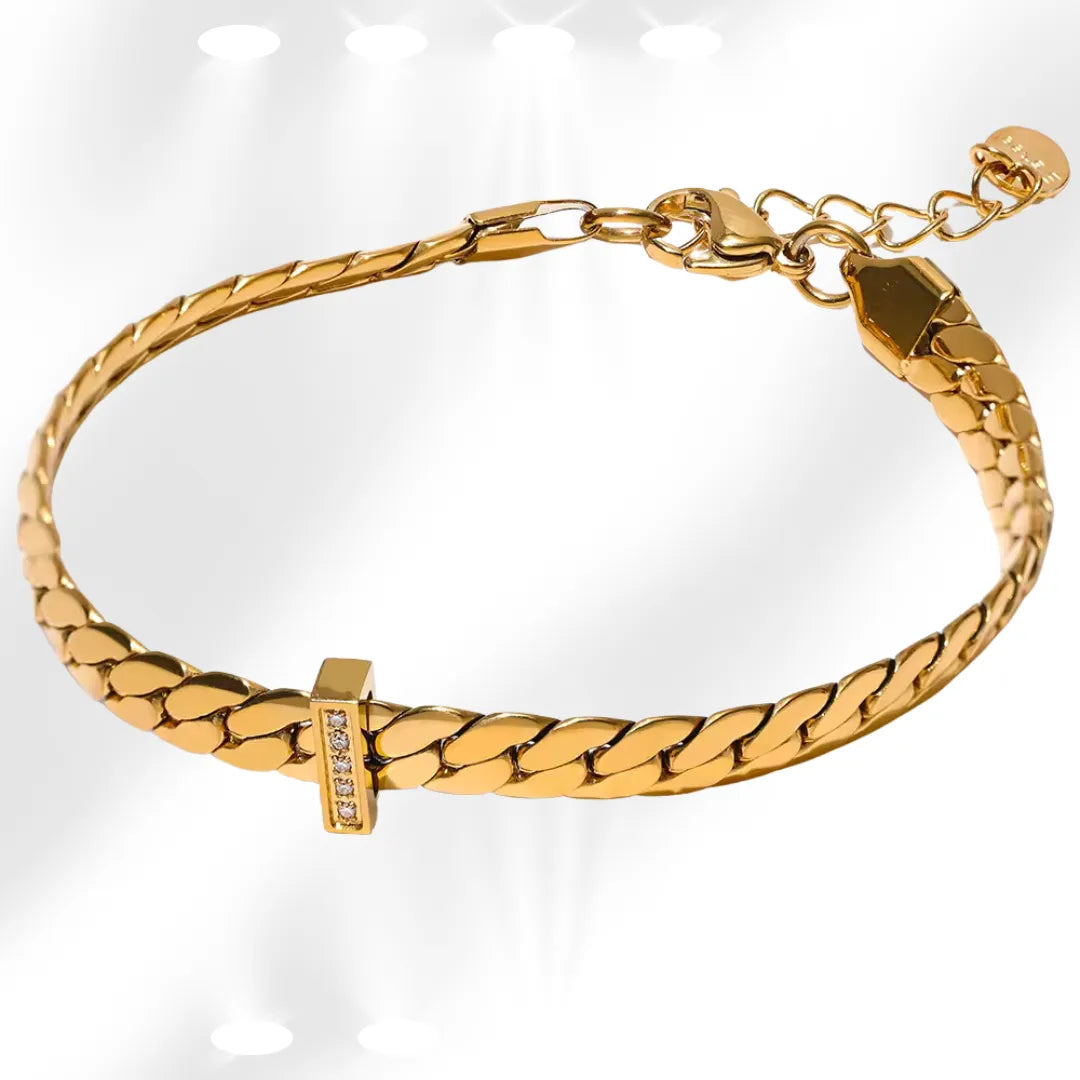 Verstellbares kubanisches Stil Armband aus Edelstahl, vergoldet mit 18K Gold, verziert mit Zirkonen für einen dezenten Glanz. Erhältlich in Gold und Silber. Fügen Sie Ihrem täglichen Stil Eleganz hinzu. Jetzt kaufen.