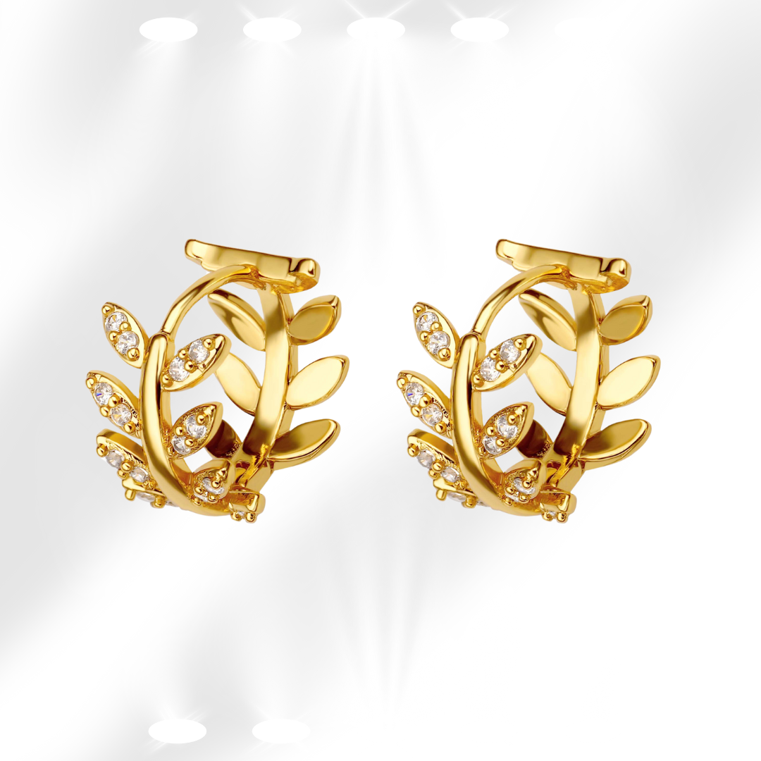 Diese eleganten Ohrringe im Lorbeer-Stil sind 18K vergoldet und bieten einen eleganten, langlebigen Glanz. Mit Zirkon-Details, die das Licht einfangen, verleihen sie jedem Outfit eine Note von Raffinesse. Erhältlich in Gold und Silber, sind sie die perfekte Wahl, um bei jeder Gelegenheit stilvoll hervorzuheben. Füge sie deiner Kollektion hinzu und strahle mit Eleganz!