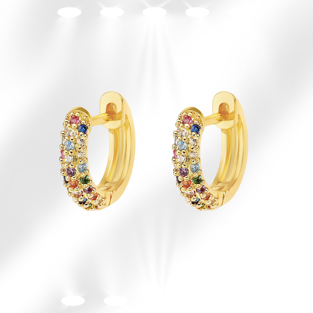 Diese eleganten Ohrringe sind 18K vergoldet und mit farbigen Zirkonen verziert, erhältlich in drei atemberaubenden Farben: Gold, Silber und Roségold. Verleihen Sie jedem Outfit eine exquisite Note von Raffinesse und Stil. Perfekt für besondere Anlässe oder den täglichen Glamour. Strahlen Sie mit Eleganz - jetzt kaufen.